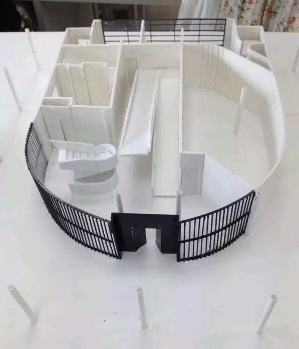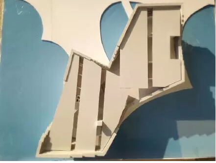 之前看到隈研吾大師v&a at dundee的渲染圖,當時就被美到了,在archidaily和筑龍網上down了圖紙。(結果做完了發現原建筑還沒有竣工…汗顏)因為我們想做白色的建筑,雪浮板又容易受傷,噴漆的話連接處會有瑕疵,所以我們選擇了abs板…一種新型塑料,充電寶外殼的材質,非常硬.....建筑外殼是隈研吾大師一貫的間隙風格,所以三個妹子把十多塊板用美工刀劃成條,不說了都是淚…